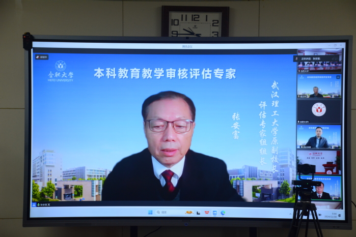 1118日上午,合肥大學本科教育教學審核評估線上啟動會召開。安徽省教育廳高教處處長蘇石,專家組組長、武漢理工大學副校長張安富,副組長、安徽工程大學原黨委書記劉寧,以及專家組全體成員出席線上會議。領導王其東、任永陳秀、白義香,各職能部門主要負責人、二級學院黨政負責人、校級督導代表、教師代表、學生代表參加。