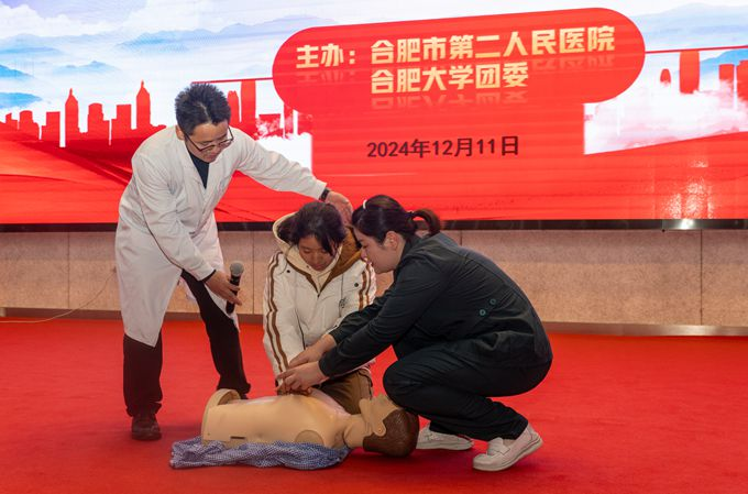 活動中,來自市二院的十余位醫生詳細講解了急救知識,通過實際操作演示讓師生更直觀地理解了心肺復蘇、人工呼吸以及海姆立克急救法等關鍵技能。急診科醫生王敬軍鼓勵學生們積極參與到實操練習中去,以便能夠在關鍵時刻發揮作用。眼科專家王志敏利用生動形象的圖片與案例,向大家介紹了長時間使用電子產品對眼睛可能造成的傷害,并提出了幾點有效預防近視加深的方法建議。活動最后,合肥市第二人民醫院的專業醫療人員還為到場的學生免費提供眼部健康檢查服務。