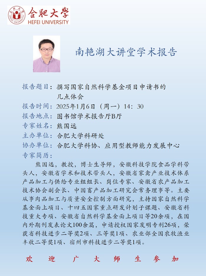 【南艷湖大講堂】撰寫國家自然科學基金項目申請書的幾點體會