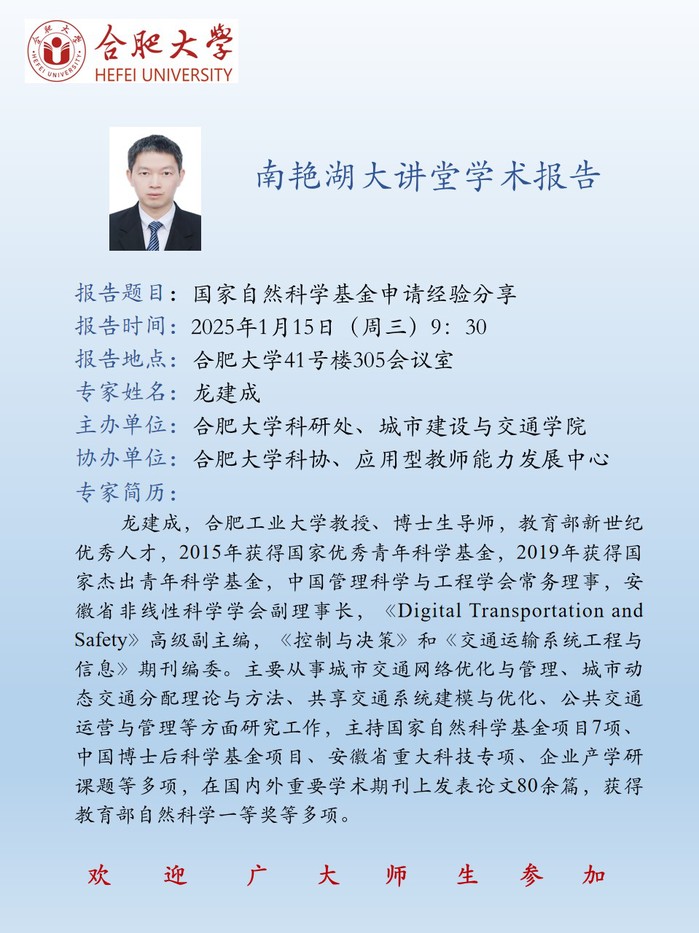 【南艷湖大講堂】國家自然科學(xué)基金申請經(jīng)驗(yàn)分享