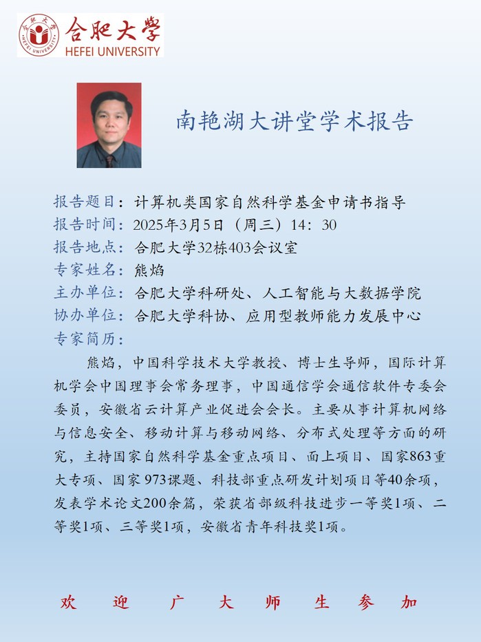 【南艷湖大講堂】計算機(jī)類國家自然科學(xué)基金申請書指導(dǎo)