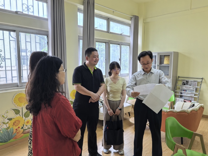 吳功福實地察看了學院文化建設長廊和語音室,走訪了二級心理工作站,對學院主動加強文化建設、以文促育表示充分肯定,希望學院持續為學生營造更加安心舒心的學習成長環境。