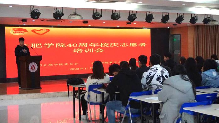 11月17日中午,我校建校40周年校慶志愿者工作專項培訓會在大學生活動室舉行。校團委書記杜娟、團委辦公室主任萬昭瑩及全體校慶志愿者200多人參加會議。校青志聯主席汪朋主持會議。