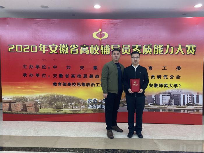 11月24日至27日,2020年安徽省高校輔導員素質能力大賽在安徽師范大學舉行。本次大賽由省委教育工委主辦,省高校思想政治教育研究會輔導員研究分會、教育部高校思想政治工作隊伍培訓研修中心(安徽師范大學)承辦。省內各高校進行初賽選拔后,共有87所高校推薦的87名優秀輔導員參加本次省級決賽。我校選派先進制造工程學院輔導員鐘倫鎖參賽,獲大賽二等獎。