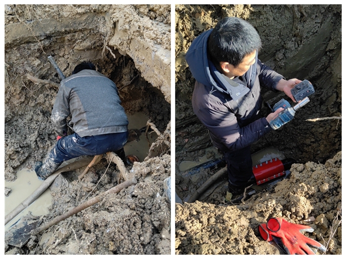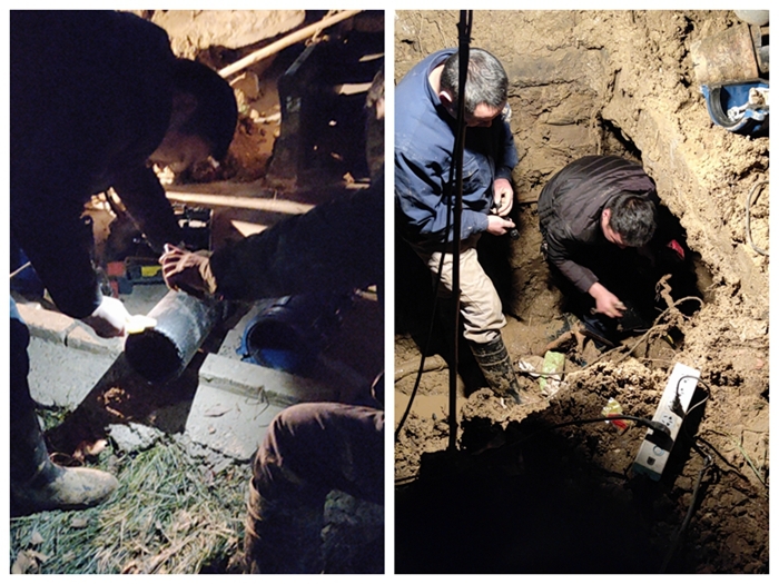 當天下午,工作人員發現34號樓附近地面有水上冒,立刻電話告知。由于地下焊接需在無水狀態下進行,高層供水總閥緊急關閉。為不影響正常的教學秩序并盡快恢復正常供水,工作人員選擇在夜間對破損管道進行維修,迅速調動車力、人力,準備維修設備和材料,對冒水路段進行開挖,對破損管道進行更換、整修并對道路進行回填修復。經過10個小時的奮戰,終于在晚間11點將斷裂管道維修完畢并恢復供水。