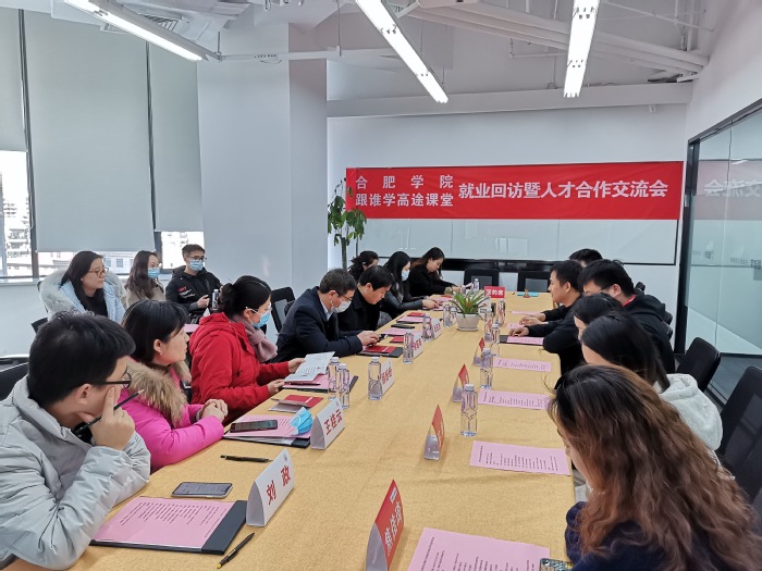 為進一步加強校企合作,拓寬畢業(yè)生就業(yè)渠道,了解就業(yè)市場需求,做好就業(yè)校友回訪工作,1月13日下午,我校赴“跟誰學(xué)”合肥運營中心開展就業(yè)回訪暨人才合作交流活動。校學(xué)生處副處長、就業(yè)指導(dǎo)中心主任張應(yīng)杰,人工智能與大數(shù)據(jù)學(xué)院黨委副書記儲昭輝及校就業(yè)指導(dǎo)中心全體老師、部分二級學(xué)院就業(yè)聯(lián)絡(luò)員、畢業(yè)班輔導(dǎo)員等參加上述活動?!案l學(xué)”合肥運營中心人力行政總監(jiān)朱學(xué)棟、學(xué)部經(jīng)理李德順、校園招聘經(jīng)理楊晉以及部分我校就業(yè)校友參加交流會。會議由朱學(xué)棟主持。