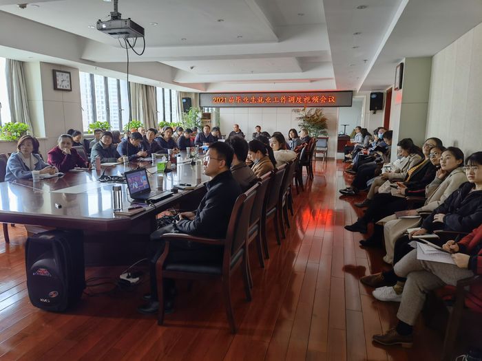 3月16日下午,教育部召開2021屆高校畢業生就業工作第二次調度視頻會,我校在行政樓九樓西會議室設置會場。校黨委委員、黨委學生工作部部長、學生處處長朱濤,黨委學生工作部副部長、學生處副處長、就業指導中心主任張應杰,各二級學院黨委副書記以及學工辦負責人、全體畢業班輔導員、就業工作聯絡員、專業班主任等40余人參加了會議。