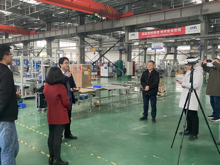 在C3棟科研樓,哈工大機器人集團合肥有限公司總經(jīng)理李旭東詳細介紹了6個研究所的相關(guān)情況,并重點展示了機器人的各種功能。最后直播轉(zhuǎn)場到合肥哈工龍延智能裝備有限公司的生產(chǎn)廠區(qū),哈工龍延是我校優(yōu)秀校友李新利創(chuàng)辦的企業(yè),它提供“智慧工廠”的解決方案、機器人物料搬運系統(tǒng)集成應(yīng)用等,企業(yè)年銷售額連續(xù)3年均在1.5個億左右,是實習(xí)基地中的龍頭企業(yè)。直播中,李旭東對同學(xué)們提出的問題一一作出解答。