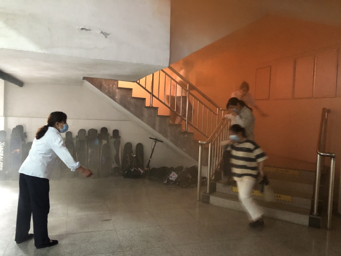 演練分三個階段進行:5月8日下午,保衛處聯合參演部門在行政樓第二會議室召開演練協調會,明確演練的任務分工及組織過程中的安全注意事項;5月11日中午13時30分,在女生宿舍25幢、26幢組織演練;5月12日中午13時30分,在男生宿舍45幢、46幢組織演練。