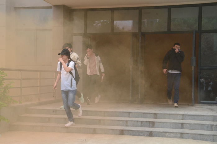 演練前,易班中心等網絡媒體面向全校推送防災減災知識,各學院輔導員向學生普及了防震及消防疏散應知應會知識。演練指揮組、通訊聯絡組、疏散引導組、應急保障組、宣傳報道組等通力協作,確保場地及各項物資準備到位。過程中,各組合作確保了演練安全有序進行。在現場疏散引導員的提醒指引下,學生們在防震演練階段能找到安全可靠地點進行躲避并做好身體重要部位的安全防護,在消防疏散演練階段能護住口鼻并保持低姿快速通過濃煙區。