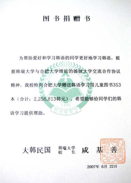 作為我院姊妹大學,韓國韓瑞大學自2001年接收我院第一批留學生后,就與我院保持著密切的交流和良好的友誼,此次捐贈活動不僅體現(xiàn)兩校合作交流精神,更張顯出兩所大學之間的深厚友誼。(宣傳部 外事處)