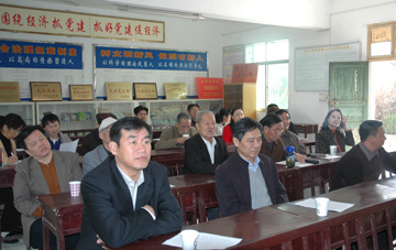 在豐峽村會議室,大家認真聽取了豐峽村村委冉書記對該村的介紹:豐峽村是2000年從重慶市巫山縣巫峽、南陵、大溪3個鄉鎮9個村151戶遷移水湖鎮,獨立建制。該村現有625人,耕地面積625畝,以養殖業為主導產業,采用公司+農戶的經營模式,經濟效益十分明顯,是合肥市養殖特色村,2005年實現人均純收入3000元,比全縣人均純收入高435元。