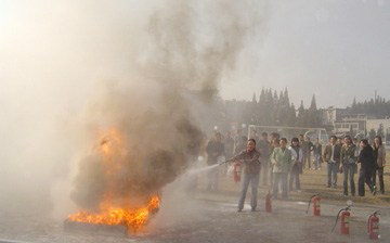 根據上級教育、公安部門關于加強消防宣傳教育的要求,2006年11月9日上午,學院保衛處舉行11•9消防培訓與滅火演練,全院各單位兼職消防員參加了培訓,并到操場進行了移動滅火器的實際滅火演練。