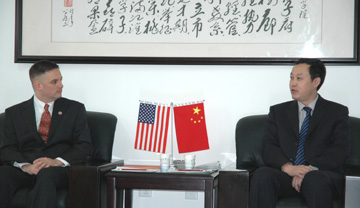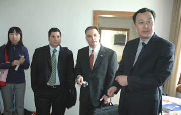 10月27日上午,目前世界上學生人數最多的大學,美國俄亥俄州立大學中國研究所助理主任白林(Brian S.Bare)、美國哥倫布市商會副主席、經濟發展主管麥特?麥克考利斯(Matt Mc Collrster)到我院南艷湖校區訪問。我院副院長蔡敬民、外事處副處長陳景林及中國語言文學系副主任詹向紅等在南區行政樓三樓會議室熱情會見。