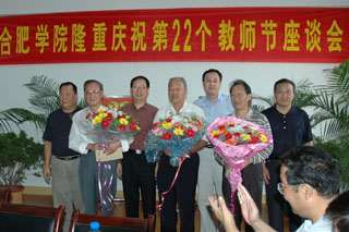 院長趙良慶,副院長蔡敬民還分別在座談會上講話。院長趙良慶在講話中提出,教育工作就是為人師表,作為合格教師,要政治強,業務精,要不斷提高個人素質,并落實到自己的一言一行。趙良慶院長還強調,“愛”是合肥學院的文化之根,當今價值觀多元化,面對80、90后的特殊群體,大學不僅要大樓,而更要的是大師,大愛。副院長蔡敬明闡釋了我院“以人為本”的教育理念,并指出學院目前各項事業有了良好的發展勢頭,這是大家共同努力的結果,希望大家再接再厲,早日實現學院建設一流大學的目標。