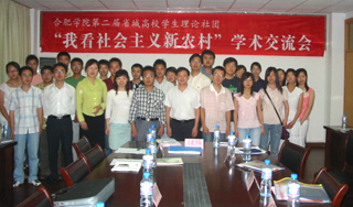 近日,合肥學院第二屆省城高校理論性學生社團學術論文交流會在我院南艷湖校區行政樓會議室舉行。本次交流會議以“我看社會主義新農村”為主題,由合肥學院團委主辦,合肥學院共青團理論研究社、合肥學院鄧小平理論與“三個代表”重要思想研究會承辦,中國科學技術大學鄧小平理論研究會、安徽大學農民之子協會、合肥工業大學研究生鄧小平理論研究會、安徽農業大學小康社會研究協會、安徽教育學院學生會社團部等40余人應邀出席了會議。