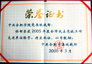 會議對在2005年度全市統戰工作中表現突出的個人和集體進行表彰,我院獲“民主黨派工作先進單位”、“黨外人士工作先進單位”、“統戰調研宣傳工作先進單位”3項集體獎和7項個人調研論文獎,所獲獎項居所有獲獎單位之首。(