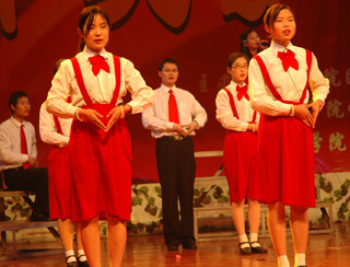 合肥學(xué)院2006年新年文藝晚會12月16日晚在院南校區(qū)禮堂成功上演,師生們用自己的歌聲、笑聲和掌聲喜迎新年的到來。院領(lǐng)導(dǎo)趙良慶、蔡敬民、丁明,各系部負(fù)責(zé)人以及近1800名師生觀看了演出。