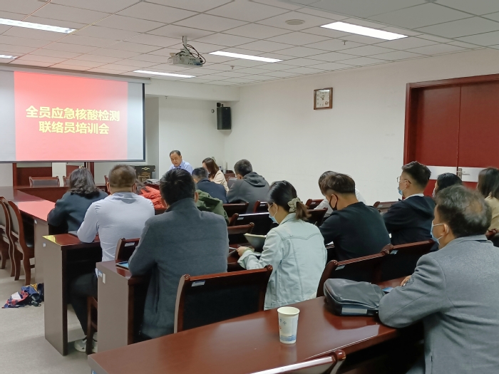 為做好疫情防控全員應急核酸檢測,4月13日上午,校黨政辦、公管處、學生處在行政樓二樓會議室舉行應急核酸檢測信息登記員培訓,邀請臨湖社區始信居委會疫情防控專員周玥為信息登記員介紹信息登記系統操作要點、新冠抗原檢測試劑使用方法和屬地疫情防控管理措施,培訓會由公管處處長徐勁松主持。