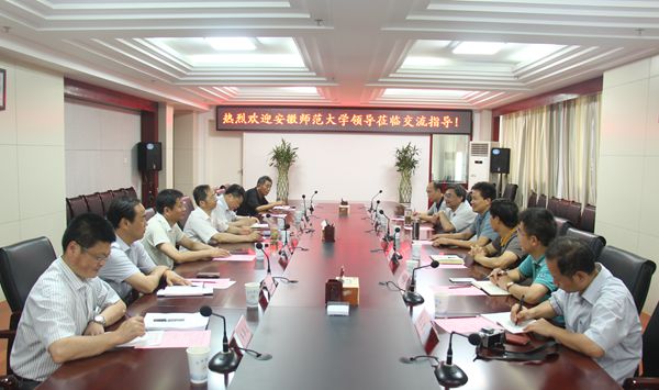 6月19日,安徽師范大學副校長畢明福一行6人來我校進行交流訪問。我校紀委書記洪家友、副校長張思揚在行政樓九樓東會議室熱情接待了來賓。雙方就基建維修、校園綠化、節能建設與管理等方面展開了討論并交換了意見。