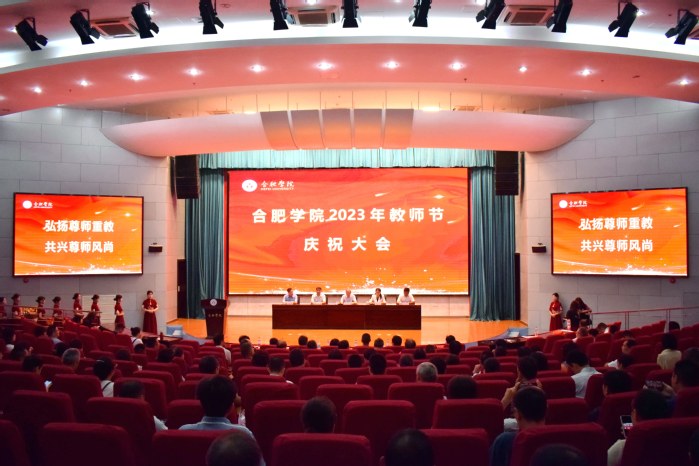 9月8日上午,合肥學院慶祝第39個教師節大會于圖書館報告廳A廳隆重召開。黨委書記王其東,副院長陳秀,校黨委委員白義香、賈峰、王曉峰出席大會,學校中層干部、榮退教職工、獲獎教師、教職工代表及學生代表參加會議,大會由陳秀主持。