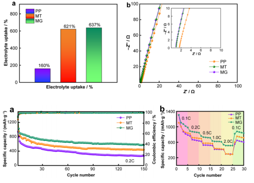 圖4 Super P與MoO?/MoS?共摻雜的梯度納米纖維膜電化學性能