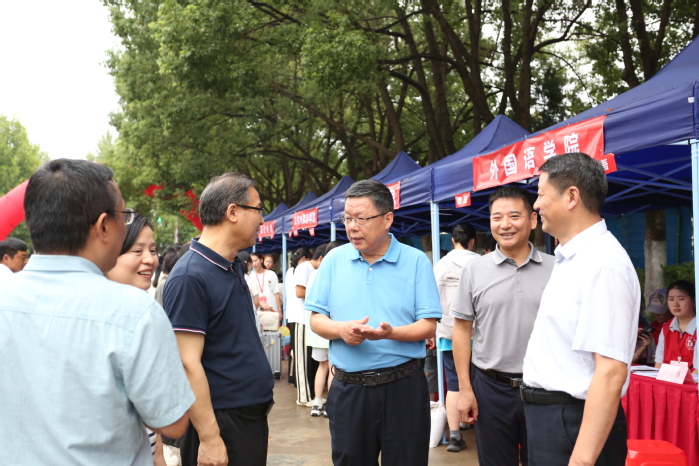 “你來自哪里?一路上辛苦了!”“歡迎來到合肥大學!”報到期間,校領導鄔平川、任永、周飛、陳秀、白義香、吳功福、王曉峰深入報到點、食堂,與新生和家長親切交談,慰問參與迎新工作的師生。