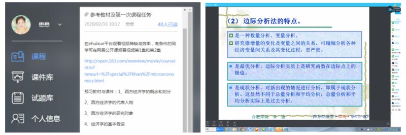 為了彌補線上教學開展互動不足,解決學生課堂吸收知識效果可能不如線下教學的問題,通過在線上平臺選擇優秀MOOC教學資源鼓勵學生自主學習。通過查找資料就三門課程分別向學生推薦了自建MOOC課程“微觀經濟分析”(e會學)、“國際金融”、“資產評估學”(中國大學MOOC)。