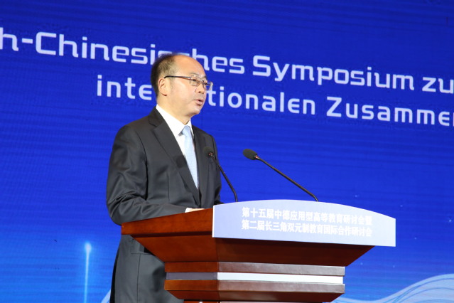 Er?ffnung des 15. chinesisch-deutschen Symposiums über anwendungsorientierte Hochschulbildung und des zweiten Symposiums über internationale Zusammenarbeit im dualen Bildungssystem im Yangtze-Delta