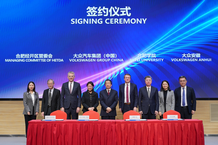 為推動(dòng)產(chǎn)教深度融合、校企協(xié)同育人,打造“雙元制”高等教育合作范例,2月20日,大眾學(xué)院簽約揭牌儀式在合肥市中德合作創(chuàng)新園隆重舉辦。大眾汽車(chē)集團(tuán)(中國(guó))執(zhí)行副總裁傅勤彥(Jens Pfitzinger),大眾汽車(chē)(安徽)有限公司首席執(zhí)行官葛皖鏑(Erwin Gabardi),合肥學(xué)院黨委書(shū)記王其東,合肥市委常委路軍,省委教育工委委員、省教育廳副廳長(zhǎng)儲(chǔ)常連出席儀式并致辭。儀式由合肥學(xué)院院長(zhǎng)吳春梅主持。