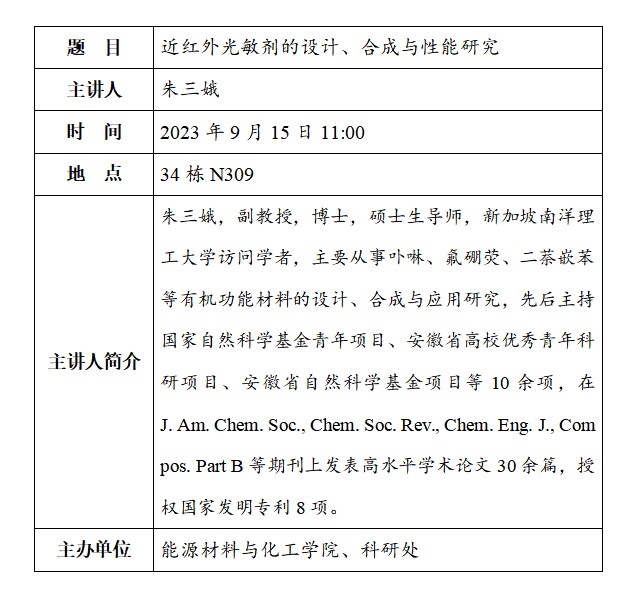 【善思講壇】近紅外光敏劑的設計、合成與性能研究