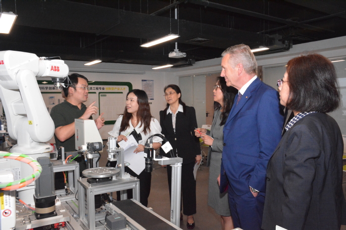 Herr Wulff und seine Delegation besuchten auch die Ausbildungsplattform des Volkswagen-Instituts und informierten sich über den Aufbau der F?cher, das modulare Curriculum, die praktische Ausbildung und den Unterricht im Labor für die Zustandsbewertung multimodaler Ger?te im Anwendungs- und Innovationszentrum für intelligente Fertigungssystem und im Anwendungszentrum für digitale Zwillingstechnologie und -technik. Er best?tigte die Positionierung der Universit?t Hefei als ?lokal, anwendungsorientiert und international.