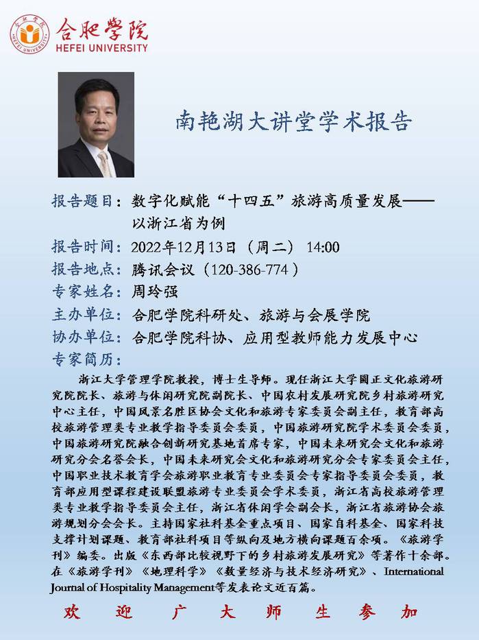 【講座預告】數(shù)字化賦能“十四五”旅游高質(zhì)量發(fā)展——以浙江省為例