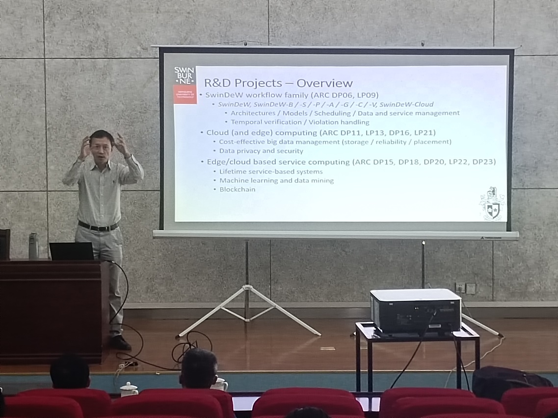 楊耘教授是澳大利亞斯威本科技大學正教授,博士生導師。他的主要研究領域包括云及邊緣計算,服務計算,大數據,軟件系統,工作流管理系統。現已有5部專著,在國際會議和雜志上共發表發表論文超過400篇。此次他的到訪和講座,無疑為合肥大學的師生們帶來了一場學術盛宴。