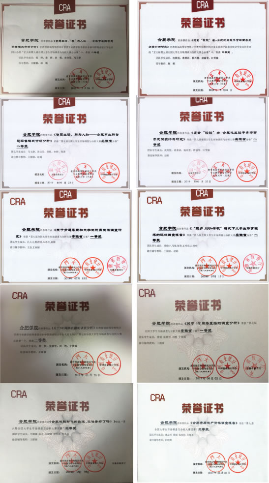 市場調查與分析團隊自2016年成立以來,在王麗麗、趙娟老師的帶領下,在牛勇、閆桂芳、康素玲等指導老師的共同努力下,成績顯著,獲得國家級及省級的各類獎項40余項,其中具有代表性獎項列表如下: