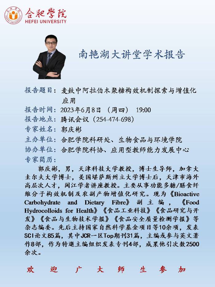 【講座預告】麥麩中阿拉伯木聚糖構效機制探索與增值化應用