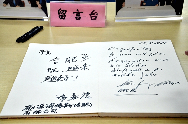 會談后,俞志敏代表合肥學院生物與環境工程系與勵源海博斯(合肥)環保科技有限公司簽署全面合作協議。來賓一行還參觀了“中德共建合肥學院三十周年展”、合大環境檢測有限公司及我校分析測試中心。