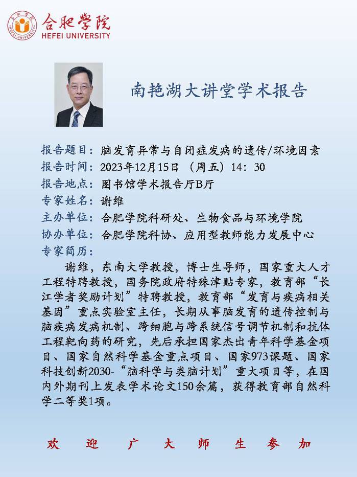 【南艷湖大講堂】腦發(fā)育異常與自閉癥發(fā)病的遺傳/環(huán)境因素