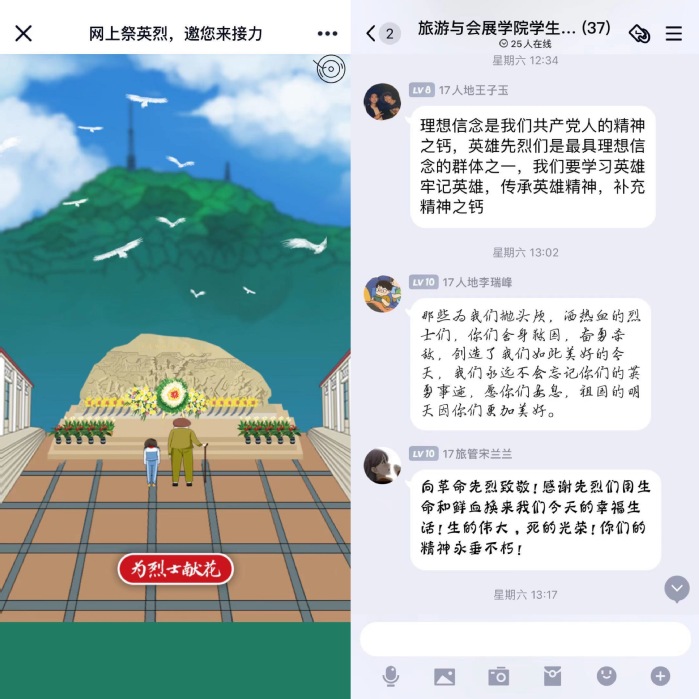 旅游與會展學(xué)院師生黨員和海恒社區(qū)耕耘居委會工作人員共赴三河古鎮(zhèn)參觀董寅初紀(jì)念館,學(xué)習(xí)了董寅初“求學(xué)之路、實(shí)業(yè)報(bào)國、心系僑胞、維護(hù)祖國統(tǒng)一、招商引資”的先進(jìn)事跡,感悟到他抗擊日軍、文誅日寇的決心。黨員們受到了深刻的教育,紛紛表示要向先烈們學(xué)習(xí)愛國主義、革命樂觀主義精神。經(jīng)濟(jì)與管理學(xué)院組織學(xué)生黨員代表前往肥東縣蔡永祥烈士紀(jì)念館,瞻仰烈士銅像,緬懷這位“一心為公的共產(chǎn)主義戰(zhàn)士”。在紀(jì)念館展廳,同學(xué)們通過認(rèn)真觀看圖片、文字、影像等珍貴歷史資料,細(xì)致地了解了蔡永祥短暫而不平凡的人生歷程。語言文化與傳媒學(xué)院組織學(xué)生黨支部開展“學(xué)習(xí)黨史砥礪奮進(jìn) 緬懷先烈不忘黨恩”黨日活動,大學(xué)生黨員們來到大蜀山烈士陵園進(jìn)行清明祭掃,向革命先烈默哀致敬,在烈士紀(jì)念碑前敬獻(xiàn)花籃以表對革命前輩的緬懷之情。生物食品與環(huán)境學(xué)院、先進(jìn)制造工程學(xué)院黨委參觀渡江戰(zhàn)役紀(jì)念館,悼念為新中國成立而“甘將熱血沃中華”的烈士。高大的渡江戰(zhàn)役總前委群雕前,黨員同志們胸前閃耀著黨徽,一聲聲鏗鏘有力的入黨誓詞,堅(jiān)定了入黨初衷和奮斗信念。此外,各二級學(xué)院師生黨員參加了“網(wǎng)上清明祭英烈”活動,學(xué)習(xí)烈士豐功偉績,緬懷先烈歷史貢獻(xiàn),向不同時(shí)期為祖國、為人民犧牲寶貴生命的烈士們致敬,并通過網(wǎng)上獻(xiàn)花、線上留言等方式寄托哀思。