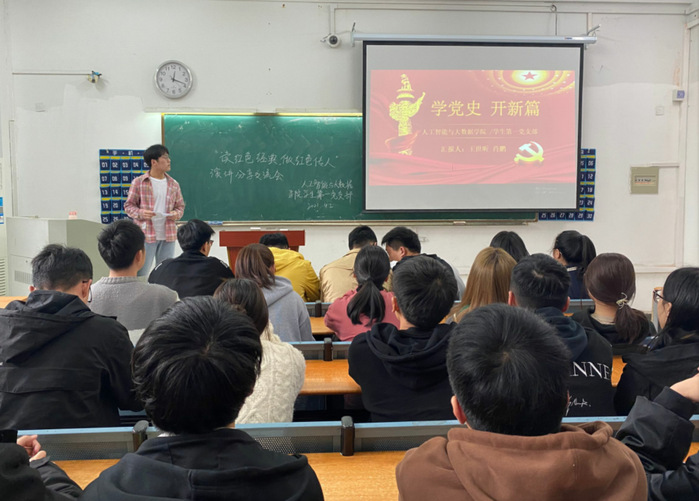 “學生課堂”奏響黨史學習教育“協奏曲”。學校充分發揮學生主體作用,調動學生積極主動性,學生黨支部通過黨史讀書會、演講分享交流會、線上交流會、播放紅色電影等形式,營造人人講黨史的良好氛圍,讓黨史學習教育深深扎根于每一個青年學生的心中。先進制造工程學院學生黨支部舉辦讀書會活動,學生代表帶領全體學生黨員分享黨史書籍學習心得。人工智能與大數據學院學生黨支部組織學生黨員觀看學習《中國共產黨為什么“能”》影片,并在線上開展《創造青春之中國——走進李大釗》讀書交流會,“理論和實踐都證明,中國共產黨能帶領中國人民取得巨大成功絕非偶然,而是因為她有著一系列優秀特質。作為青年黨員,要將黨史學習作為必修課,自覺傳承紅色基因,永葆政治本色,做擔當民族復興大任的時代新人。”同學們紛紛表示。