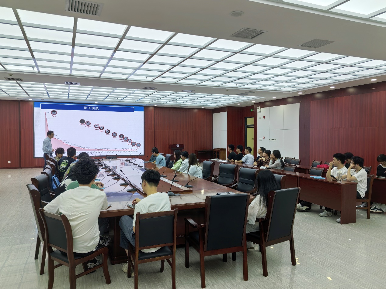 曹剛教授以“半導體量子計算”為主題,從量子現象引入量子計算概念,介紹了其科研團隊在“柵控半導體量子點”、“量子比特編碼及操控”、“量子比特擴展”等方面取得的豐碩成果,并與參會師生進行了學術交流與研討。