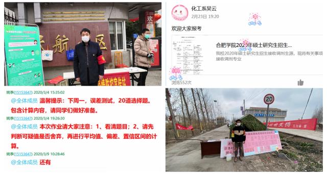 在疫情防控中,學院黨員領導干部靠前指揮,全體黨政干部堅守崗位,每日隨訪學生情況,并加強宣傳引導,堅定師生打贏疫情防控阻擊戰(zhàn)的信心決心。對湖北地區(qū)和與湖北有過接觸的學生,由院領導、輔導員一對一重點聯(lián)系,及時掌握情況,及時指導幫助。在抓好疫情防控工作的同時,充分運用QQ群、微信群等信息化工具,召開線上會議,對各項工作進行了具體部署:包括開學后疫情防控、黨建、線上教學、產(chǎn)學研、教科研、碩士點申報、研究生招生、人才引進、學生等各項工作,保證了“停開學不停工作”,促進了各項工作的穩(wěn)步推進。