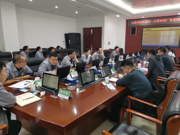 參觀卷煙廠智能制造生產車間后,雙方關于校企產學研合作進行深入交流,主要圍繞智能制造生產技術開發、智能制造相關人才培訓、相關項目聯合申報等相關內容。會議開始,陳副廠長代表公司對合肥學院先進院呂剛院長和教師團隊能進入公司參觀指導工作表示熱烈歡迎,并介紹合肥卷煙廠的整體發展和智能制造技術應用研究進展情況,希望學院能夠在智能制造相關技術方面給予更多指導和支持。呂院長代表先進院對陳廠長的熱情招待和智能車間參觀介紹表示感謝,會議期間由智能制造工程系副主任金飛翔老師進行我院的發展和科研情況的匯報,各位老師對于參觀卷煙智能制造生產線后都針對性闡述了個人感受和想法,大家一致認為合肥卷煙廠的智能制造生產技術實力強大,智能化水平高。最后雙方表示此次雙方的交流非常成功,希望后期能夠在產學研方面進行深入交流合作。