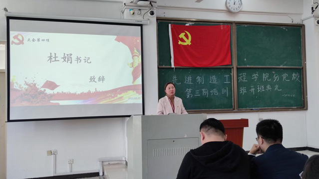 2021年3月25日中午12:40,先進制造工程學院分黨校第三期入黨積極分子培訓班開班典禮于38棟3JT教室順利進行。院黨委書記杜娟、黨委副書記李秀娟、各黨支部書記出席了典禮,170余名黨校學員參加了典禮,典禮由研究生支部書記威力旺老師主持。