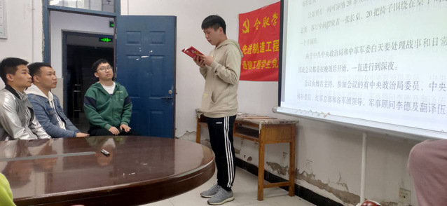 為了加強政治學習、規范培養發展、創新組織生活,深刻領會黨的首創精神、奮斗精神、奉獻精神和優良傳統,使紅色基因浸入心靈,樹立正確的世界觀、人生觀、價值觀。4月25日星期日晚上18:30,通信工程學生黨支部于48棟103舉行第五次讀書會暨微黨課活動。通信工程學生黨支部書記宋超、黨支部黨員和入黨積極分子參與本次活動。本次活動由宣傳一組姜國進同志擔任主持人。