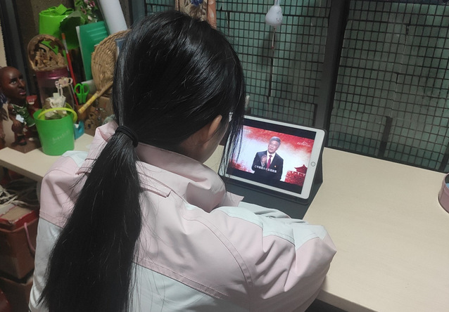 17級機制2+3班黃榮升在宿舍進行線上學習