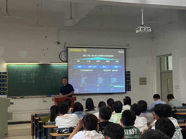 作為海爾冰箱工廠智能制造技術負責人,同時作為合肥學院的優秀畢業生,朱立清給學生分享了從進入合肥學院開始如何渡過大學四年學習生活,如何開始第一份工作,在工作中又如何成長等經歷。通過結合自身學習工作生活,讓學生深刻認識到進入大學應該要學會重塑自我和努力學習,面對當前社會的發展變化復雜,時刻擁有競爭意識;不斷激發個人潛能,要不斷總結思考,做好規劃并堅持執行完成,從而自己得到發展提高,四年后交上一張完美的答卷。