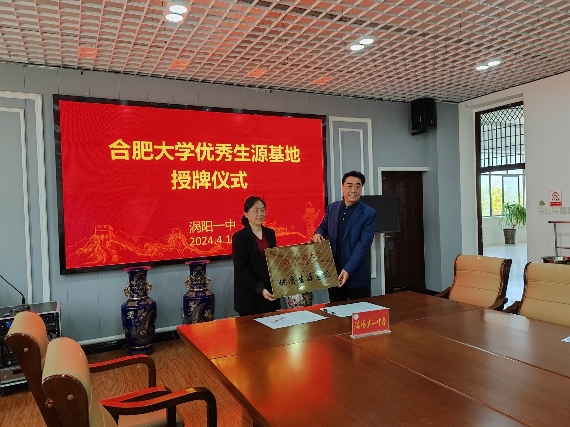 為進一步提升我校優質生源,4月17日至18日,先進制造工程學院聯合經濟與管理學院開展優質生源地共建、簽約、掛牌。先進制造工程學院副書記蔡靈美、經濟與管理學院副院長于娜、經管學院骨干教師潘娣、電子信息工程系主任張勝、智能制造專業主任金飛翔等一行人員前往渦陽縣第一中學、渦陽縣育萃中學兩所優質生源地進行簽約、掛牌。優質生源基地學校領導對合肥大學一行人員來訪表示熱烈的歡迎。蔡靈美副書記和于娜副院長對優質生源基地學校長期以來對我校發展的支持及輸送了一批批優秀學生表示衷心感謝。