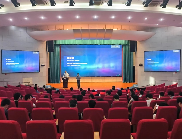 Am Beispiel von Volkswagen erl?uterte Professor Schneider detailliert den Automobilherstellungsprozess, Anwendungsbeispiele für intelligente Trends in der Automobilproduktion. Au?erdem erkl?rte er, wie das Programm für intelligente Fertigung in die Praxis umgesetzt werden kann. In der interaktiven Diskussionsrunde stellten die Studierenden aktiv Fragen und Professor Schneider beantwortete diese geduldig. Darüber hinaus stellte er gro?e Erwartungen an die Studierenden.