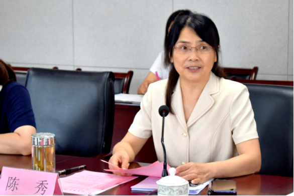 Chen Xiu, Chair of Anhui Sino-German Educational Cooperation Foundation and Vice President of HFU, introduces to the guests the Sino-German Education Cooperation Demonstration Base and Anhui Sino-German Education Cooperation Foundation.